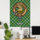 Insignia de escudo del león Clan Currie rodeada por una correa y hebilla sobre el fondo del tartán. Texto personalizado.