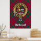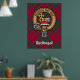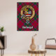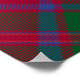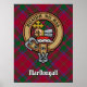 El clan MacDougall insignia escudo rodeada por una correa y hebilla sobre el fondo del tartán. Texto personalizado.