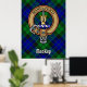 Insignia escudo del clan MacKay rodeada por una correa y hebilla sobre fondo tartán. Texto personalizado.
