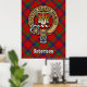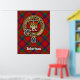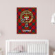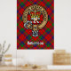 Insignia escudo del clan Robertson rodeada por una correa y hebilla sobre el fondo del tartán. Texto personalizado.