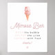 Esta señal de barra de mimosa presenta helado de acuarela en color rosa y una divertida tipografía inspirada en el estilo retro. Cambie fácilmente las fuentes, los colores de las fuentes y el color de fondo para que coincida con el estilo de su evento. Esta señal es perfecta para su desayuno nupcial retro, despedida de soltera, baby shower o cualquier evento en cualquier momento del año.