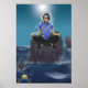 Kaito, el personaje de los elementos acuáticos, de la historieta gratuita en línea TAOFEWA manga, se muestra meditando en una roca rodeada de agua con la luna brillando en el cielo azul.