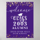 Bienvenido a los alumnos a su reunión de clase de la escuela secundaria o universitaria (editable para cualquier reunión de año) con este signo de poster de color personalizado con estrellas de oro, luces de cuerda, escritura a mano y tipografía decorativa y personalizado con el nombre de su escuela y año de curso de graduación en su elección de colores (mostrado con texto blanco y gráficos en un fondo morado editable). Los colores se pueden cambiar a los colores de la escuela o coordinar los colores de los temas fiestas. OPCIONES DE IMPRESIÓN poster: El ejemplo se muestra en un tamaño de 18x24": hay otros tamaños disponibles o el diseño se puede transferir a un tablero de papel, pancarta, fondo de tapiz o descargarse como archivo digital para la impresión local en la página de pedidos. ASISTENCIA: Para obtener ayuda con la modificación o personalización del diseño, el cambio de color, el redimensionamiento, la transferencia del diseño a otro producto o la conversión a un archivo de descarga, póngase en contacto con el diseñador ANTES DE PEDIDO a través de la pestaña de MENSAJE de charla de Zazzle que aparece a continuación o envíe un correo electrónico a makeitaboutyoustore@gmail.com.