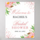 ¡Clásica lluvia de flores rosadas de boda, cartel de bienvenida!