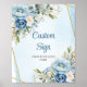 Póster Clásico Boda con Marco Dorado y Verde Polvo Azul
