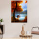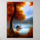 Póster Clásico Otoño una cabaña a árboles del lago hojas
