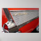 Foto de un auto rojo clásico. Líneas suaves y músculo sólido bajo el capó.