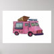 Relive the sweet days of summer with this poster, showcasing a classic pink ice cream truck, complete with a delightful cone on top. This charming image captures the nostalgic joy of chasing down the ice cream truck on a hot day. Perfect for adding a touch of whimsy to any space, this poster is ideal for ice cream lovers, vintage enthusiasts, or anyone who appreciates a bit of retro fun.