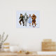 This enchanting poster features a timeless illustration of the beloved main characters from "The Wizard of Oz," set against a soft, light blue background. Dorothy stands prominently in her iconic blue gingham dress and ruby slippers, flanked by the Scarecrow, the Tin Man, and the Cowardly Lion, all arm-in-arm and ready for adventure. The characters are depicted in their classic vibrant appearances from the beloved film. This delightful poster is perfect for decorating any space, celebrating the enduring magic and friendship of this classic story.