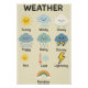 ¡Aprendan sobre el clima con este adorable poster! Con ilustraciones alegres como soleados, lluviosos, nevados y más, este colorido diseño ayuda a niños pequeños y pequeños a reconocer diferentes tipos de clima. Perfecto para guarderías, salas de juegos o aulas preescolares.
