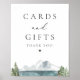 Esta plantilla de señalización de tarjetas y regalos presenta una pintura bohemia de acuarela en un lago de montaña y un elegante tipo de letra caligráfica. Este diseño rústico es la adición perfecta a cualquier evento.