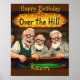 Este divertido cartel de fiesta de cumpleaños presenta a tres ancianos en el Club Sobre La Colina.