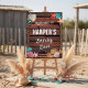 Welcome guests in true coastal western style with this personalized Coastal Cowgirl Birthday Welcome Sign. Featuring a rustic weathered wood background, rope frame border and delicate accents of pastel seashells, starfish and turquoise horseshoes, this design blends beach charm with cowgirl spirit.