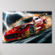 Póster Coche de Carreras roja con patrón de llama muy fue