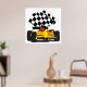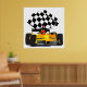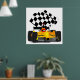 Póster Coche de raza amarilla con bandera verificada