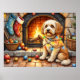 Póster Cockapoo Sitting by Fireplace with Christmas Light