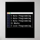 Este divertido diseño de software y desarrollador web de ciencias de la computación dice "odio la programación me encanta".