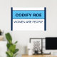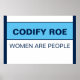 Codificar las mujeres de carretera son personas. Codificar Roe debería ser el piso de los derechos de salud de las mujeres, no el techo. Y ahora ni siquiera eso existe. Díganle al Congreso que es hora de que hagan lo menos que puedan por la salud, seguridad e igualdad de las mujeres, porque las mujeres son personas. Descripción del diseño: el espacio de diseño es un fondo blanco con un borde azul oscuro. En la mitad superior del espacio de diseño, las palabras "Codificar la ruta" en una fuente sans serif azul oscuro. Debajo, una amplia franja azul claro con bordes superiores e inferiores azul oscuro. Debajo de la franja, en la mitad inferior del diseño, las palabras "Las mujeres son personas".