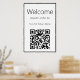 Este poster de bienvenida es blanco y negro. Tiene un código QR en la parte inferior que puede reemplazar con su código QR para proporcionar a sus clientes su menú actual o una lista de precios.