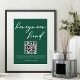 Este sólido poster de fondos de luna de miel de boda verde esmeralda presenta un guión blanco clásico para una pareja que se casa en un bosque u otro lugar natural. Agregue su sitio web de registro de bodas código QR y mensaje de personalizado. Celebra tu amor con este tranquilo color y coordina con nuestra colección de tipografías minimalistas.