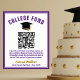 Este moderno poster de fondos del partido de graduación morado y personalizado dorado presenta un enlace de código QR para que los invitados contribuyan a los gastos universitarios de tu graduado de secundaria. Personalizar esta impresión con tu mensaje, el nombre de la escuela y el año.