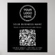 Cartel negro moderno para tu negocio con tu código QR para que los clientes lo escaneen y obtengan una lista de tus productos, servicios y precios. Agrega tu logotipo, nombre de la empresa, código QR, número de teléfono y dirección en tipografía blanca simple.