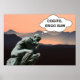 La estatua de piedra del pensador se encuentra en un telón de fondo de una cordillera bajo un atardecer sereno. La frase 'Cogito, ergo sum' aparece en una burbuja de pensamiento sobre la cabeza de la figura, añadiendo una dimensión filosófica. Los colores cálidos del cielo realzan el ánimo reflexivo. El cogito latino, ergo sum, es usualmente traducido al inglés como "Creo, por lo tanto soy" es el "primer principio" de la filosofía de René Descartes. Quién mejor para pensarlo que la famosa estatua de pensadores. Esta imagen única también está disponible en posters de diferentes tamaños y se puede transferir fácilmente a miles de otros productos. Además está habilitado para descarga instantánea