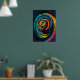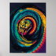The composition feels energetic and contained at the same time, balancing symmetry with fluid movement. This design works especially well on posters, canvas prints, and apparel where high contrast and saturated color can stand out clearly. Created as a stylized animal portrait, this piece blends reptile imagery with graphic abstraction, focusing on circular form, scale texture, and bold chromatic contrast.