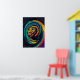 This artwork presents a tightly coiled serpent forming a dynamic spiral composition, rendered in vivid neon-inspired colors. The snake’s body curves inward toward its own center, creating a hypnotic circular motion that draws the eye directly to the stylized head. Scales are illustrated in layered patterns of teal, emerald, gold, and crimson, with bold highlights and shadow blocks adding depth and texture.