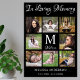 Honre a su ser querido con un cartel fúnebre de colaje de fotos conmemorativo personalizado en diseño blanco y negro. Este signo conmemorativo de inicial y nombre monogramado único es el regalo perfecto para usted, familiares o amigos para honrar a sus seres queridos.