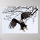 Un águila calva parece estar suspendida mientras huye.