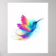 Colibrí luminoso, irrisorio, exótico volador sobre fondo blanco, pintado con pintura multicolor, acuarela. Colibrí arcoiris.