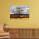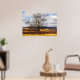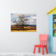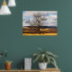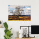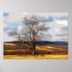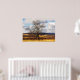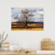 Este poster cuenta con un árbol con ramas desnudas que están solos en un campo dorado. Colinas onduladas en tonos dorados, amarillos, marrones y azules forman un telón de fondo. Un cielo nublado con manchas de azul completa esta escena rural de Nueva York.