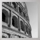 Vista del Coliseo en Roma. Anfiteatro romano monumental de 3 niveles una vez utilizado para juegos de gladiador. Fotografía en blanco y negro