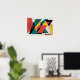 Esta sorprendente obra de arte abstracta explota con formas geométricas audaces y líneas agudas en tonos vibrantes de verde azulado, criminal, mostaza y negro. Perfecto para los amantes del arte moderno y de la estética de mediados de siglo, esta pieza aporta energía y movimiento a cualquier espacio con su composición atrevida y su ambiente retro-moderno.