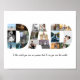 Este es un collage de fotos que explica la palabra DAD junto con un mensaje personalizado. En total cabe 18 fotografías. Este es el regalo perfecto para papá por el día del padre, su cumpleaños o Navidades.