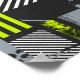 Esta obra de arte presenta una sorprendente combinación de formas geométricas y patrones de negrita. El diseño se basa en el negro, el gris, el blanco, el verde claro y los toques marrones. Las rayas diagonales y horizontales dominan el diseño, mientras que los trazos de pincel texturados, las salpicaduras y las impresiones de tipo animal agregan profundidad y variedad. La composición parece un collage, que equilibra bloques estructurados con detalles expresivos y caóticos. El contraste entre los tonos verdes vivos y los tonos grises mudos crea un impacto visual moderno y desenfadado.