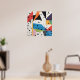 Un diseño divertido y animado de papel coloreado da forma a un collage con puntos negros.