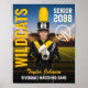Personalized senior sports poster for athlete and sports player. This customizable design template is perfect for homecoming sports event, senior night, sports award banquet or graduation party décor for your athlete son, daughter or student. It's a great way to display player portrait and memories from their sports games. The design features abstract background, and it can be customized with names, player jersey number, school teams or any custom text. It makes a unique and meaningful gift and decoration for your player.