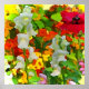 ¡Este poster colorido es una fiesta para los ojos! Cuenta con un ambiente informal en el jardín, con pargos rosas y blancos, nasturtios en naranja, amarillo y rojo y una amapola roja. La fotografía original se ha mejorado digitalmente para producir un patrón impresionista abstracto.
