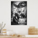 Poster de página de color sombreado para imprimir para adultos. Sexy bruja de halloween bebiendo cerveza/brea rodeada de calabazas y murciélagos. Esta es una bonita decoración de halloween. Gran gesto para la gente a la que le encanta hacer colorear.