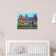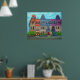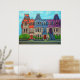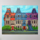 Vibrante y estilizada pintura de las coloridas casas victorianas en la plaza de Saint-Louis en el distrito de Plateau de Montreal, Quebec, por Lisa Lorenz