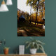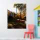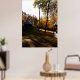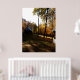Un poster perfecto para el otoño. Observen los colores de otoño y la luz del sol que brilla a través de los árboles en este paisaje rústico de campo.