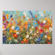 Bring the beauty of a blooming wildflower meadow into any space with this vibrant floral poster. A lively mix of red, orange, yellow, blue, purple, pink, and white blossoms fills the scene. Bold brushstrokes and expressive color create a sense of movement and depth, evoking the feeling of a breezy day surrounded by wildflowers. Perfect for nature lovers, and art enthusiasts, this poster is available in multiple standard sizes for easy and inexpensive frame-it-yourself decor.