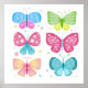 This cheerful picture shows six colorful butterflies with fun patterns on their wings. Each butterfly is different—some have polka dots, stripes, or swirls—and they all look like they're having a playful party in the sky!