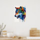 his vibrant watercolor wolf portrait explodes with bold rainbow colors including orange, blue, green, and purple, featuring dramatic paint drips and splashes for a modern artistic effect. Perfect for adding an eye-catching statement piece to any space that needs a bold pop of color and wild energy.