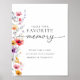 Colorida Flor Silvestre "Comparte tu recuerdo favorito" cartel blanco. Personalizado en minutos. Agrega tus datos y puedes seleccionar la fuente, color, tamaño y posición individualmente haciendo clic en "Personalizar más". Disponible en impresión y descarga.