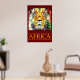 Ver África es el tema aquí, con el rey de las bestias, un hermoso retrato de un león africano real hecho en un creativo y colorido estilo de arte pop en un oscuro fondo rojo y el nombre del país debajo en el que se combina el tipo de letra de todas las tapas de oro. Este es un caramelo perfecto para oficinas, hoteles o tu hogar. África es un destino turístico muy popular.
