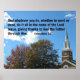 Iglesia de Acero contra un cielo azul con árboles de otoño, y Verso de la Biblia: "Y lo que hagas, ya sea de palabra o de hecho, hazlo todo en nombre del Señor Jesús, dando gracias a Dios el Padre a través de Él. Colossianos 3:17"