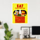 De la vasta colección de afiches de la Administración de Proyectos de Trabajo (WPA, por sus siglas en inglés) y de Guerra de Zazzle —un asombroso surtido de imágenes icónicas diseñadas para promover las artes, el bienestar público y el patriotismo— esta poster conmemorativa presenta a un poster que promueve el consumo de alimentos saludables, mostrando productos lácteos (leche, queso), huevos, frutas, verduras, pan y cereales y carne, creada en 1942.